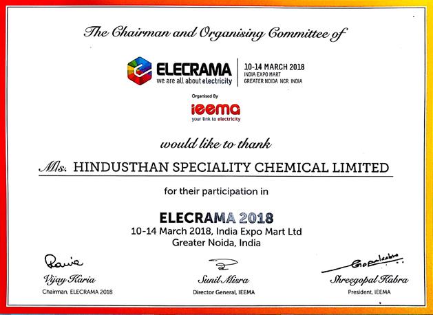 Hindusthan Speciality Chemicals Ltd participated in Elecrama 2018