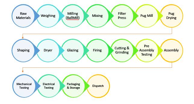 IEC employs a traditional yet refined wet process for the production of porcelain insulators. This process involves several key stages: